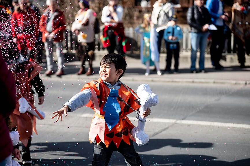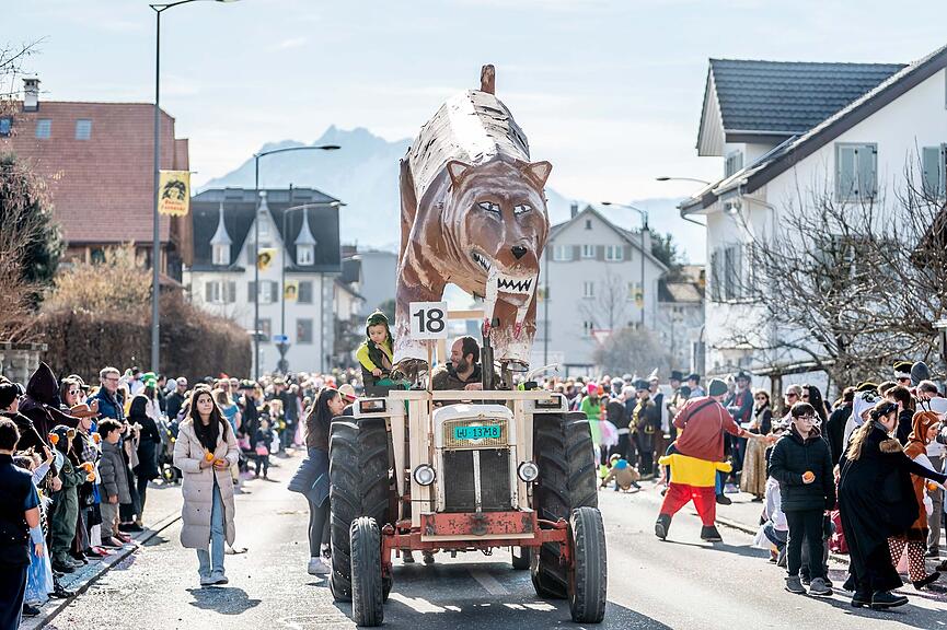 Eine gute Mischung an beeindruckenden Sujets und gutem Guuggenmusig-Sound bewies der Umzug in Root. Erklärter Star war Fred Feuerstein.