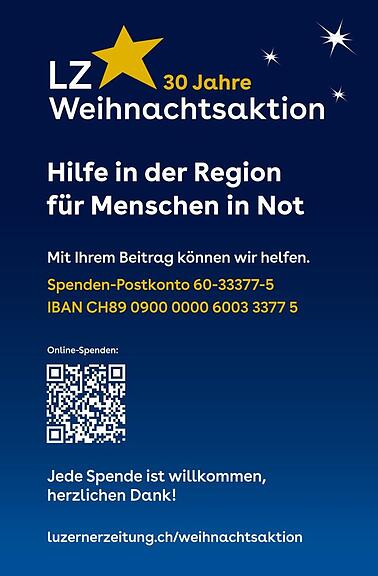 Geschäftsstelle LZ-Weihnachtsaktion: Susanne Schmidli, Geschäftsleiterin. Infos: lzweihnachtsaktion@chmedia.ch, Tel. 041 429 54 04.