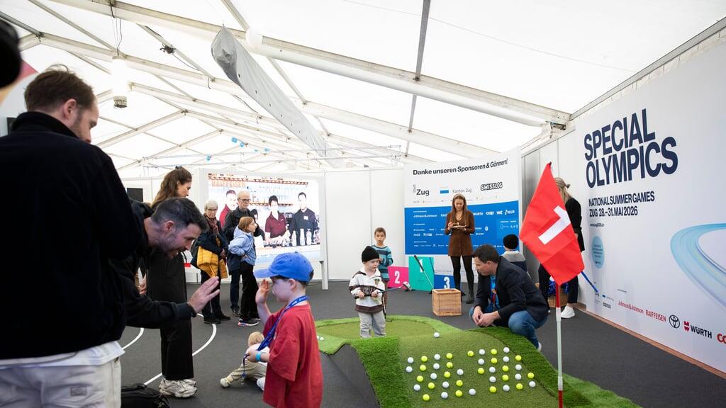 Wer an der Zuger Messe zur Sonderschau «Special Olympics National Summer Games Zug 2026» vordringt, darf sich gleich selbst ein wenig sportlich betätigen. Golf – eine der 16 angebotenen Sportarten – darf mit einem Schlag oder «Put» ausprobiert werden. «Wer trifft, ist Gewinner», schreibt Eliane Müller, OK-Präsidentin der National Summer Games (NSG) in Zug. «Es können auch gleich Siegerfotos geschossen werden.»