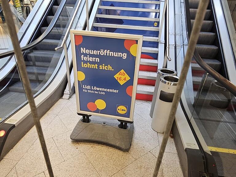 Der Detailhändler Lidl eröffnet in der Stadt Luzern bald seine erste Filiale. Schon diesen Donnerstag, am 16. April, ist es so weit. Dann wird der Discounter im ersten Obergeschoss des Löwencenters seine Tore öffnen. Das ist einer Infotafel im Löwencenter zu entnehmen. Zurzeit sind die Rolltreppen noch abgesperrt, man erkennt oben aber bereits gefüllte Regale.