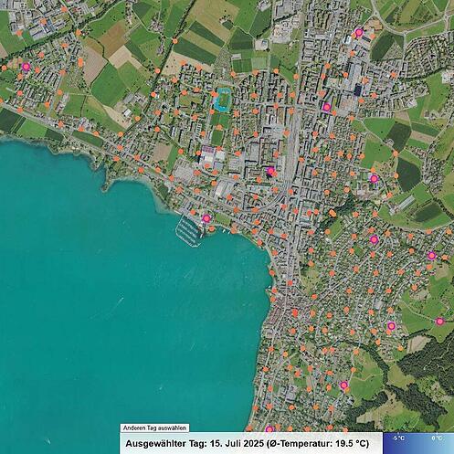 Dieser Tage scheint zwar die Sonne und der Himmel ist blau, doch die Temperaturen sind schon eher kühl. Und doch lanciert die Stadt Zug aktuell eine Massnahme, die gegen Hitze-Höllen in der Stadt helfen sollen. Hintergrund: Im vergangenen Sommer wurde ein neues Messsystem installiert, das an 300 Orten Temperatursensoren auf dem gesamten Stadtgebiet über ein Funknetz permanent Messdaten übermittelt, die auf einer Website zu einer Heatmap gesammelt werden. «Thermal-Mapping» nennt sich diese Methode. Die Hitze-Karte zeigt, wie sich die einzelnen Stadtbereiche im Sommer aufheizen. Die Erkenntnisse nutze man als «fundierte Grundlage für gezielte Klimaanpassungsmassnahmen».