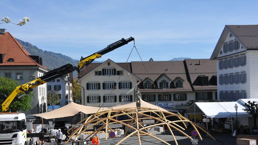 «Das wird eine geile Sache», sagt Festivalleiter Candid Wild mit einem Strahlen in den Augen, wenn er den Dom anschaut. Es ist Samstag auf dem Stanser Dorfplatz. Die Geräuschkulisse hat sich verändert. Wo sonst Gespräche und Alltagslärm dominieren, bestimmen nun Bohrer, Motorsägen und das dumpfe Aufsetzen von Material den Takt. Der Platz nimmt Form an – die Form der Stanser Musiktage.