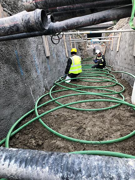 Zum Energiekonzept gehört auch ein Ringgrabenkollektor unter den Geleisen, der auf einer Länge von rund 40 Metern in zwei Metern Tiefe verlegt ist. 80 Prozent der Heizenergie wird so generiert, im Sommer dient er der passiven Kühlung. In Österreich seien Ringgrabenkollektoren weit verbreitet, in der Schweiz dagegen bisher weitgehend unbekannt.