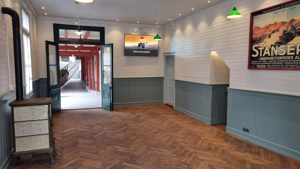 Die Stanserhornbahn hat den Wartesaal in der Talstation in den vergangenen rund drei Monaten komplett restauriert und in die ursprüngliche Grösse und möglichst ins ursprüngliche Erscheinungsbild aus dem Baujahr 1893 zurückversetzt. Zum Saisonstart am kommenden Samstag sind die Arbeiten abgeschlossen worden. Die Gäste dürfen sich laut Angaben der Bahn auf einen einladenden Wartesaal in neuem, historischem Glanz freuen.