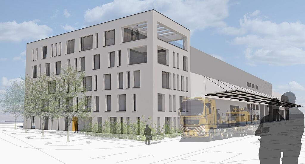 Aktuell beschäftigt Aregger rund 230 festangestellte Mitarbeiter und bildet 16 junge Berufsleute aus. Das Bauprojekt kostet rund 25 Millionen Franken und besteht aus Werkstatt, Magazin- und Lastwagenhalle, Aussenlagerplätzen und einem direkt anschliessenden Verwaltungstrakt. So sieht die Visualisierung aus: