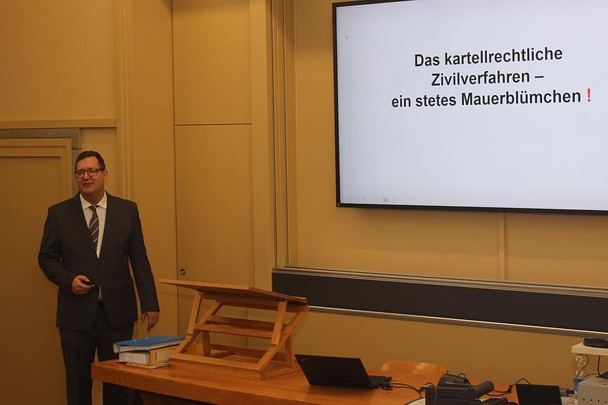 Gemäss Reglement musste die Habilitationsschrift angenommen werden. In einem nächsten Schritt müssen «Kandidaten» einen 45-minütigen Habilitationsvortrag zu einem mit der Habilitation zusammenhängenden Thema, das aber nicht identisch sein darf, halten. Stefan Keller wählte den Titel: «Das kartellrechtliche Zivilverfahren – ein stetes Mauerblümchen?».