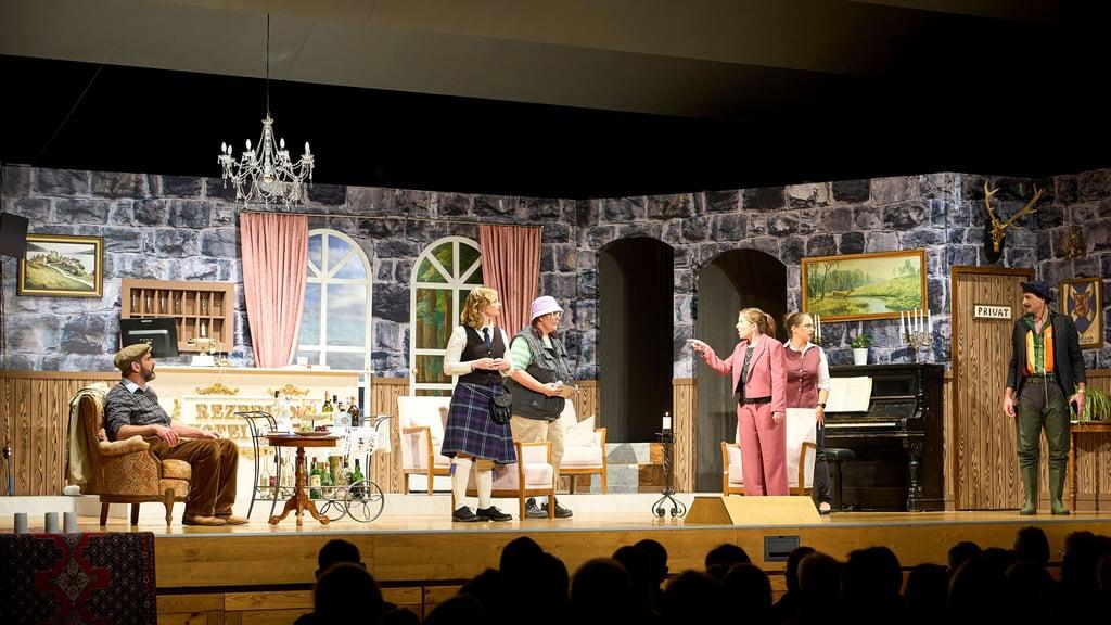 Die Klänge eines Dudelsackes ertönten am Samstagabend rund um den Maienmatt-Saal. Der Spieler im Kilt stimmte musikalisch auf eine Reise ins schottische Schlosshotel Nessie ein, in das die Theatergruppe das Publikum heuer einlädt. Auf der Bühne ist eine noble Lobby zu sehen, altes Gemäuer mit Leuchtern, Gemälden und einer Ritterrüstung neben dem Kamin. Hier hat es die Rezeptionistin Jane (gespielt von Stefanie Schönmann-Iten) nicht leicht mit den Touristen, doch viele sind es nicht mehr.