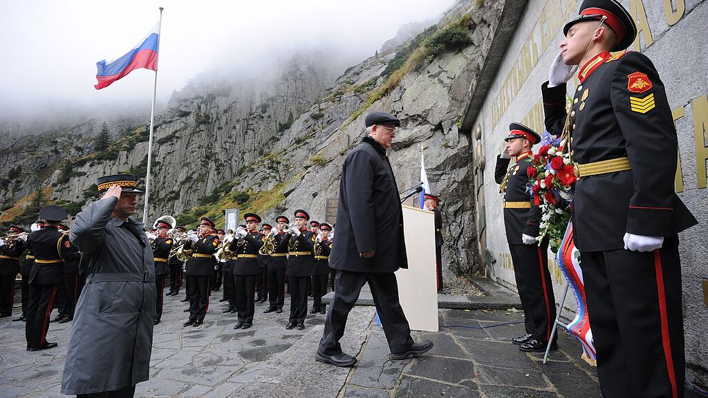 Für Russische Militärs ist das Suworow-Denkmal in der Schöllenen «ein Stück Russland in den Alpen». Die Forderung, das Denkmal mit einer Ukraine-Flagge abzudecken, stösst beim Urner Landammann zwar auf Verständnis - habe aber vorerst keine Priorität.