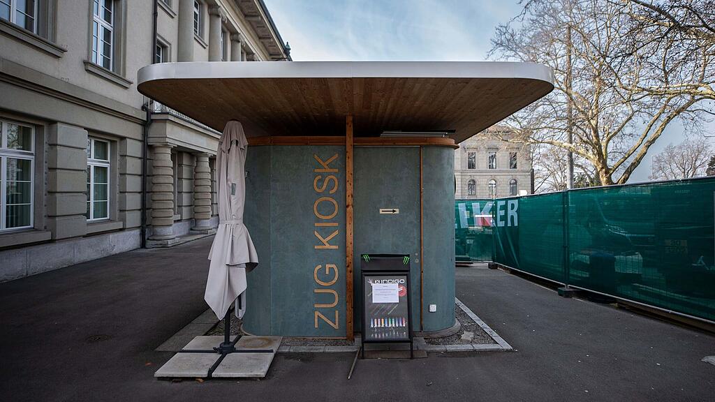 Das ohrenbetäubende Knattern des Drucklufthammers dröhnt hinter der grünen Baustellenabdeckung hervor, die den Parkplatz beim unteren Postplatz umfasst. Eingepfercht zwischen ebendieser Plane und der Mauer des Gebäudes an der Neugasse 2 steht der «Zug Kiosk». Seine Fassadenfarbe unterscheidet sich nur wenig von jener der Baustellenabdeckung. Ein Schreiben weist darauf hin, dass der kleine Laden seit dem 13. Januar vorübergehend geschlossen ist.