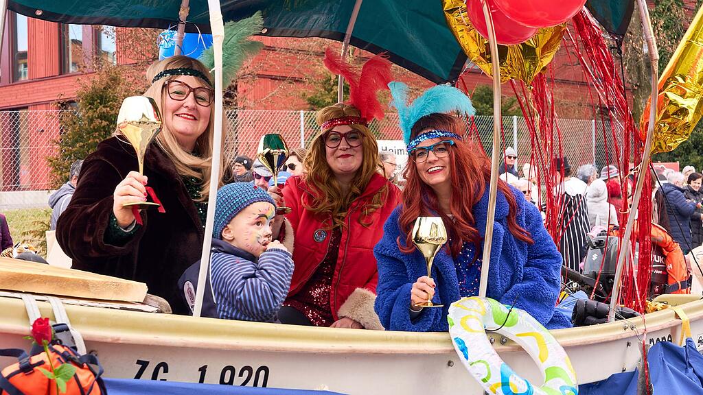 Guggenmusiken und viele pompös gestaltete Wagen prägten das Geschehen. Die dicht am Strassenrand stehenden Zuschauerinnen und Zuschauer wurden unaufhörlich aus Kanonen mit Konfetti beschossen.