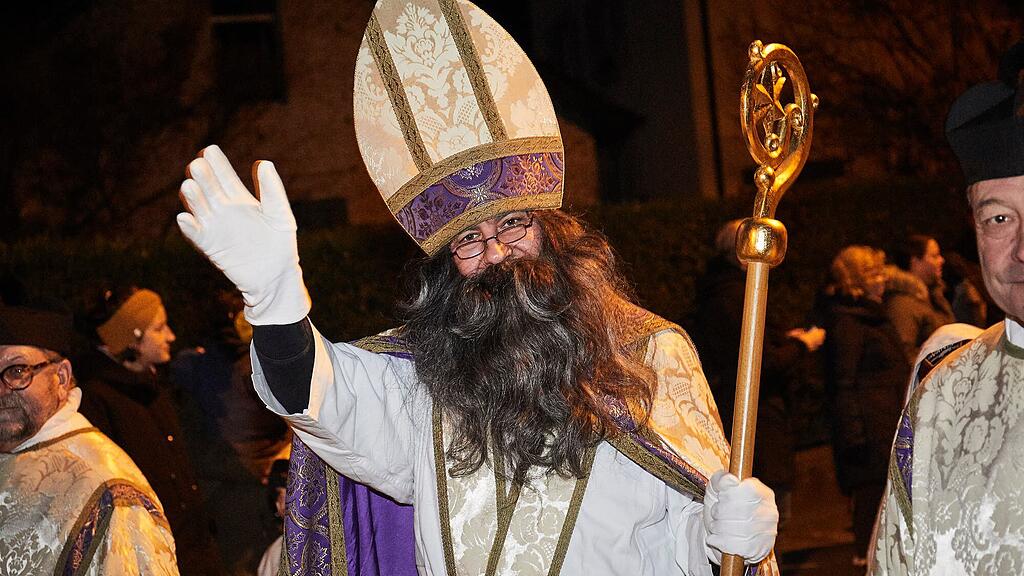 Der Samichlaus winkt für den Fotografen, hier am Umzug in Kriens. (Bild: Jakob Ineichen (8. Dezember 2019))