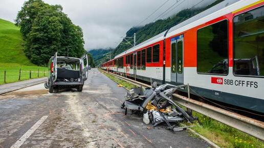 Beim Unfallfahrzeug handelte es sich um einen silbrigen Opel-Kleinbus. Dieser war um 8.40 Uhr auf dem Bahnübergang Allmend in Wolfenschiessen mit dem Schnellzug Luzern-Engelberg kollidiert.