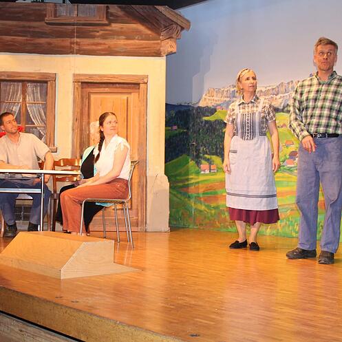Mit Priska Gisler, Ruth Arnold, Heinz Herger und auch Susi Schuler sind alteingesessene Spieler auf der Bühne anzutreffen. Es sind aber auch neue Gesichter dabei wie Joris Bissig. Daniela Arnold und Bernhard Arnold zeigen nach einer längeren Pause, dass man das Theater spielen nicht verlernen kann.