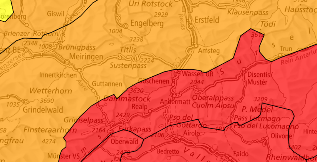 Das WSL-Institut für Schnee- und Lawinenforschung SLF warnt vor grosser Lawinengefahr (Gefahrenstufe 4-) in verschiedenen Gebieten der Südostschweiz. Betroffen ist auch der Kanton Uri rund um Andermatt. In den Kantonen Nid- und Obwalden gilt Gefahrenstufe 3+ – erheblich.