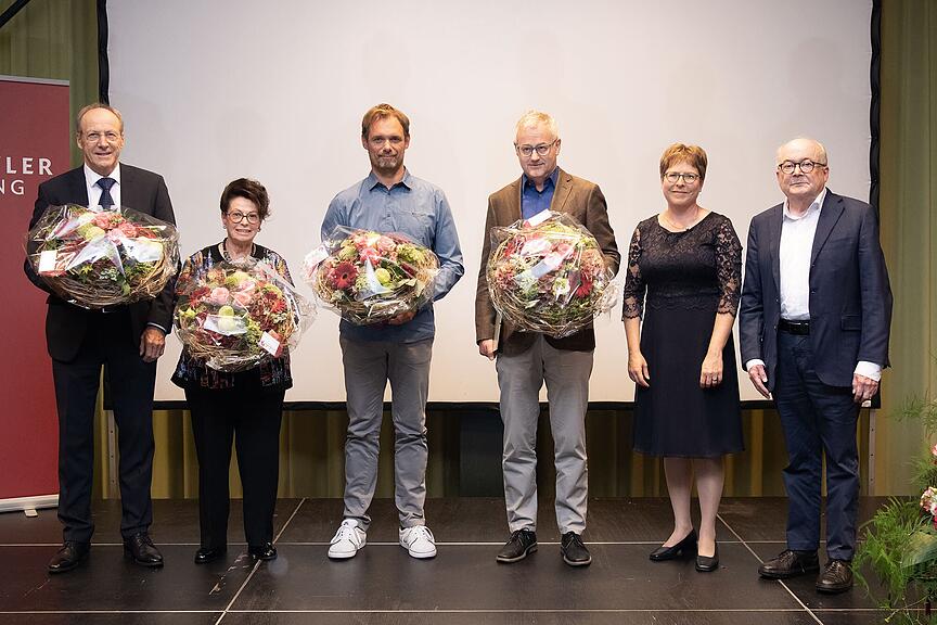 Der Urner Wanderpapst Paul Dubacher, die Naturforschende Gesellschaft Uri mit Präsident Peter Spillmann sowie das Cinema Leuzinger in Altdorf mit Inhaberin Marianne Hegi und dem Betreiberpaar Patrick und Dragana Dal Farra hatten am Donnerstag allen Grund zur Freude. Sie erhielten von Hansheiri Inderkum, dem Präsidenten der Dätwyler-Stiftung, und deren Geschäftsführerin Susanne Döhnert den mit 20'000 Franken dotierten Dätwyler Preis. Die geplante feierliche Übergabe musste aufgrund der Pandemie verschoben werden und wurde nun am Donnerstag nachgeholt.