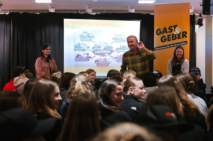 Bereits zum dritten Mal lud die IG Tourismus Uri am Mittwoch, 22. April ein, um die Vielfalt des Tourismus im eigenen Kanton hautnah zu erleben. Die Kampagne «Gast&Geber», die seit 2019 von den beiden Urner Tourismusorganisationen getragen wird, rückt dabei das Zusammenspiel der gesamten Region in den Mittelpunkt. «Tourismus ist ein Gemeinschaftswerk. Wir möchten den Jugendlichen zeigen, dass Gastfreundschaft uns alle verbindet – ob im Verein, im Dorf oder im Beruf», erklärt Tanja Müller, Projektleiterin bei Uri Tourismus.