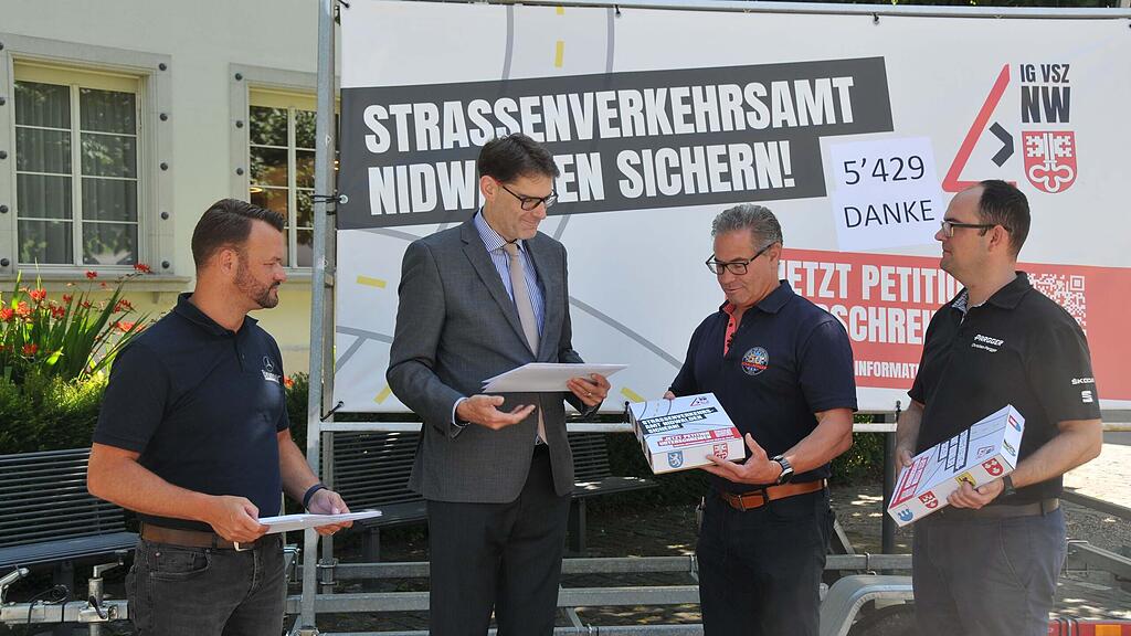 Von einem bisher einzigartigen Erfolg im Kanton Nidwalden sprach die IG VSZ Prüfzentrum Nidwalden, als sie am Dienstagvormittag die 5429 Unterschriften ihrer Petition der Staatskanzlei überreichte. Diese innert weniger als zwei Monaten gesammelte hohe Zahl von Unterschriften unterstreiche die breite Unterstützung in der Bevölkerung für das Anliegen, dass das VSZ für die Nidwaldnerinnen und Nidwaldner in Stans bleiben soll. Auch seien über 1650 Kommentare online abgegeben worden, was ein ganzes Buch fülle, so die IG.