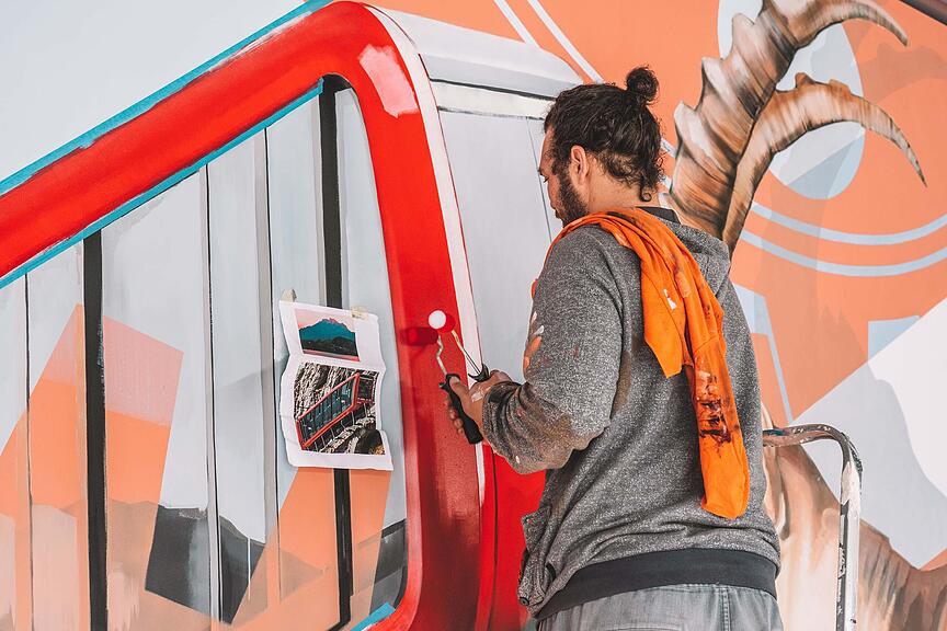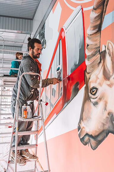 Vier Wochen lang gemalt und gesprayt: Das Kunstwerk von Queenkong an der Talstation der Pilatus-Bahnen in Bildern