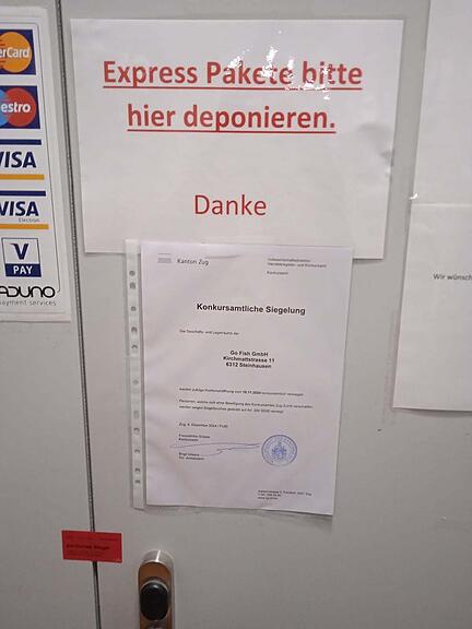 Auf der Website deutet zwar nichts auf die Schliessung hin, doch wer den Fischerladen Go Fish in Steinhausen betreten will, steht vor versiegelten Türen. Ein Schreiben des Konkursamts weist auf die «konkursamtliche Siegelung» hin. Gemäss Eintrag im Handelsregister hat der Einzelrichter am Kantonsgericht mit Entscheid vom 19. November 2024 den Konkurs über die Go Fish GmbH eröffnet. «Demnach ist die Gesellschaft aufgelöst», heisst es. Der Geschäftsführer war für eine Stellungnahme nicht erreichbar.