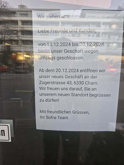 Wie die Betreiber auf einem Aushang mitteilen, ist das Geschäft bis zum 20. Dezember geschlossen als Folge des Umzugs. (bier)