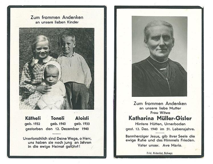 Katharina (8), Anton (7) und der erst sechs Monate alte Alois überlebten die Lawine nicht. Die verwitwete Katharina Müller-Gisler (50) – Mutter von sieben Kindern – kam ebenfalls ums Leben. Ihr Sohn Eduard erlitt schwere Verletzungen. Todesfälle musste die Familie Müller bereits zuvor verkraften. «Vor 12 Jahren verlor Frau Müller plötzlich ihren Gatten beim Heuen im Glarnerlande, und im letzten Frühjahr verunglückte ein guter Sohn in Wassen.»