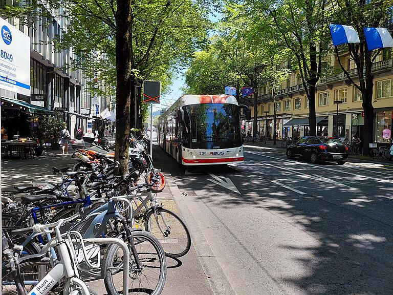 Die Haltekante beim Globus wird 50 Meter lang sein und Platz für zwei Doppelgelenkbusse bieten, sagt Daniel Nussbaumer, Projektleiter beim städtischen Tiefbauamt. Die Bäume bleiben erhalten, das Trottoir wird auf Kosten der Strasse um 42 Zentimeter verbreitert. «Dieser Platz ist nötig, damit die Bäume genügend Abstand zur Buskante aufweisen und die Behindertengerechtigkeit gewährleistet ist.» Weiter wird die Kante angehoben, um einen hindernisfreien Ein- und Ausstieg zu ermöglichen. Die Velo- und Töffabstellplätze werden in Richtung Kantonalbank verschoben.