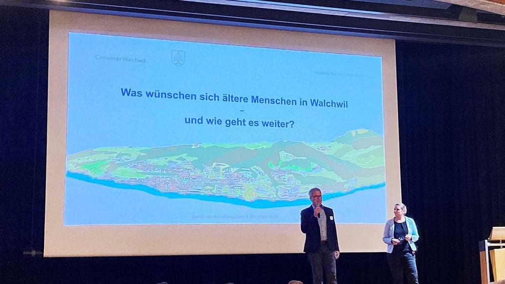 Über einem hübschen Porträt von Walchwil auf der Leinwand hinter der Bühne standen zwei Fragen: Was wünschen sich ältere Menschen in Walchwil, und wie geht es weiter? Zur ersten Frage äusserte sich die Gemeinderätin Caroline Schmid in einem kurzen Rückblick auf die Umfrage, die sich an Personen ab dem 60. Altersjahr gerichtet hatte. Sie verwies auf den grossen Rücklauf, was zu aussagekräftigen Angaben geführt habe. Ausführlich sprach dazu Monika Dietiker, Fachfrau Soziales und Gesellschaft, indem sie die vom Kanton erhaltenen Antworten mit den Ergebnissen von Walchwil verglich.