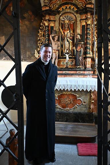 Es ist ein windiger und kalter vierter Advent in Silenen bei der Ellbogenkapelle. Viele Autos sind vor Ort parkiert und lassen erahnen, dass ein besonderer Anlass stattfindet. Menschen strömen aus der kleinen Kapelle, als die Messe zu Ende geht. Einmal im Monat leitet Pfarrer Hubert Stollsteiner hier eine heilige Messe für die Mitglieder der Personalpfarrei Maria Immaculata. Die Kapelle ist klein, aber fein. Einfach und reduziert, zugleich schmücken schöne Malereien die Decke, die erst vor wenigen Jahren restauriert worden sind.