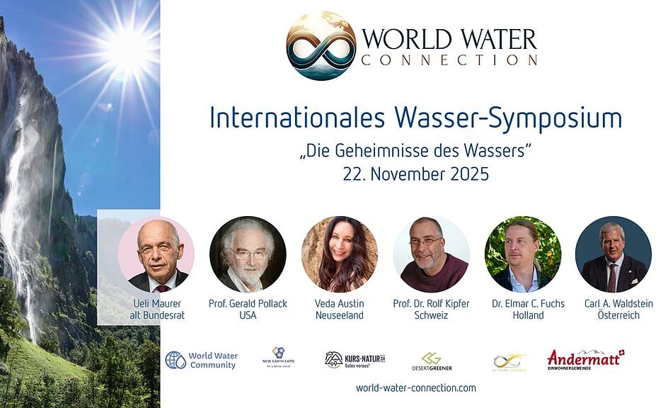 Der gemeinnützige Verein Gotthard-Connects organisiert im Hotel Radisson Blu in Andermatt am 22. November das 1. Internationale Wassersymposium. Ziel des Vereins ist es, das Wasserschloss Europas zu beleben und Brücken zwischen Wissenschaft und Leben zu schlagen, um der breiten Öffentlichkeit die neuesten wissenschaftlichen Erkenntnisse zum Thema Wasser zu vermitteln. Wie der Verein in einer Mitteilung schreibt, gibt es viele erstaunliche Entdeckungen rund ums Wasser, die noch nicht zum Allgemeinwissen gehören und die einige unserer globalen Herausforderungen lösen könnten.