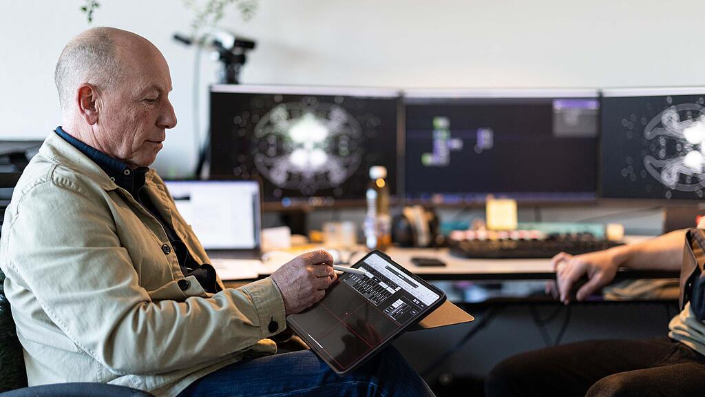 Aus den Boxen im Studio des Zuger Videokünstlers Martin Riesen erklingt langsame Streichmusik. Mit einem Touch-Stift zeichnet der Multimediakünstler Daniel Christen zur Musik auf ein iPad. Plötzlich wabert Rauch über einen grossen Bildschirm, verwandelt sich in Kreise, Kaleidoskope und geometrische Muster. Die visuelle Darstellung scheint die Musik intensiv spürbar zu machen.