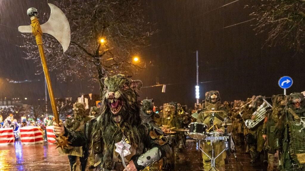 «Fang doch früher an, du musst mir nur das Kommando geben!», sagt ein Wey-Zunftmitglied halb ernsthaft, halb scherzend am Güdismontag um 5.58 Uhr auf dem Kapellplatz zu alt Zunftmeister Ivan Wey. Dieser schaut oben auf dem Wagen zwecks Zeitmanagement aufs Handy und überhört den Satz. Denn trotz Hudelwetter – und das ist noch gnädig formuliert – gehört der Zeitplan an der Wey-Tagwache diszipliniert eingehalten.