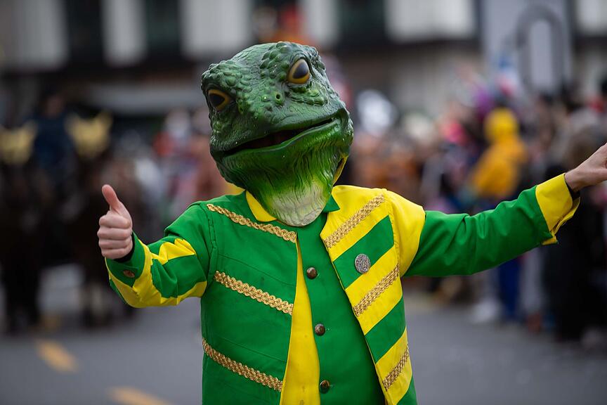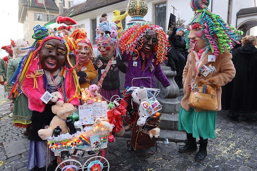 Diese Grende haben gerade Pause, Fasnacht ist schliesslich anstrengend – auch wenn man nur auf einem Kopf sitzen muss.