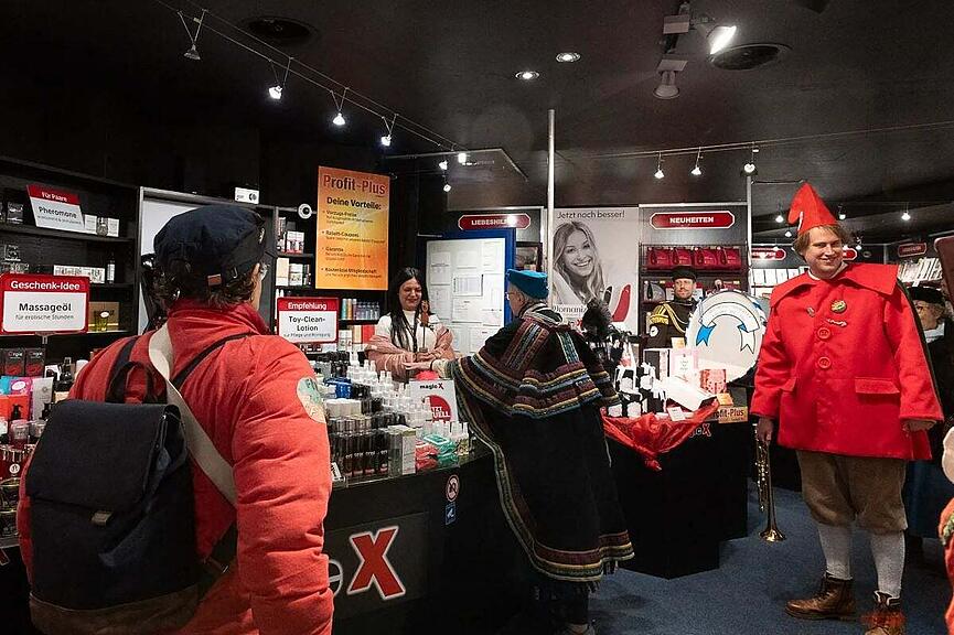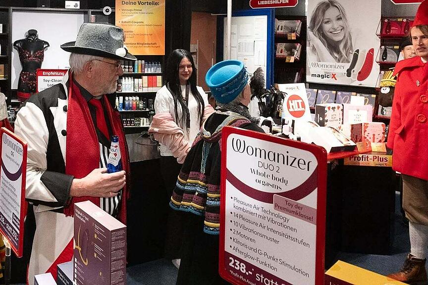 So weit, so gut. Ab geht's zum Fachgeschäft für Sextoys, dem glücklichen Gewinner 2025. Die Verkäuferin des «Magic X Erotic Megastores» scheint es auf jeden Fall zu freuen, den Lätt Göggu in den Händen zu halten. Trotz eigentlichem Fotoverbot im Geschäft wird der denkwürdige Moment festgehalten, schreibt die Komisch-Friitig-Gsellschaft. Aber schauen Sie selbst.