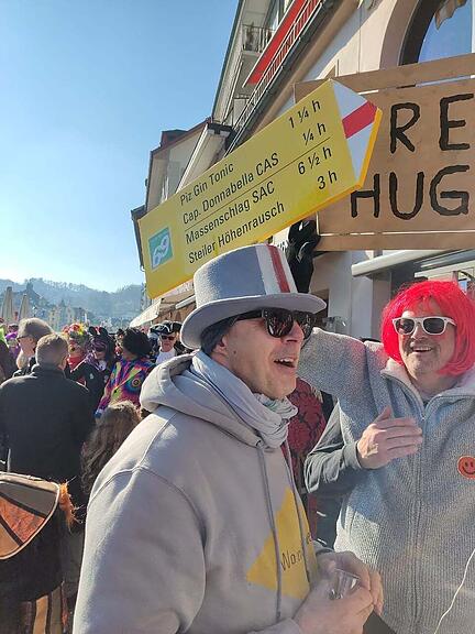 Wer einen «steilen Höhenrausch» will, braucht dafür an der Fasnacht in der Regel weniger als drei Stunden. Das Sujet wurde von vier Freunden aus Luzern entworfen, die jedes Jahr an der Fasnacht sind. Prost!