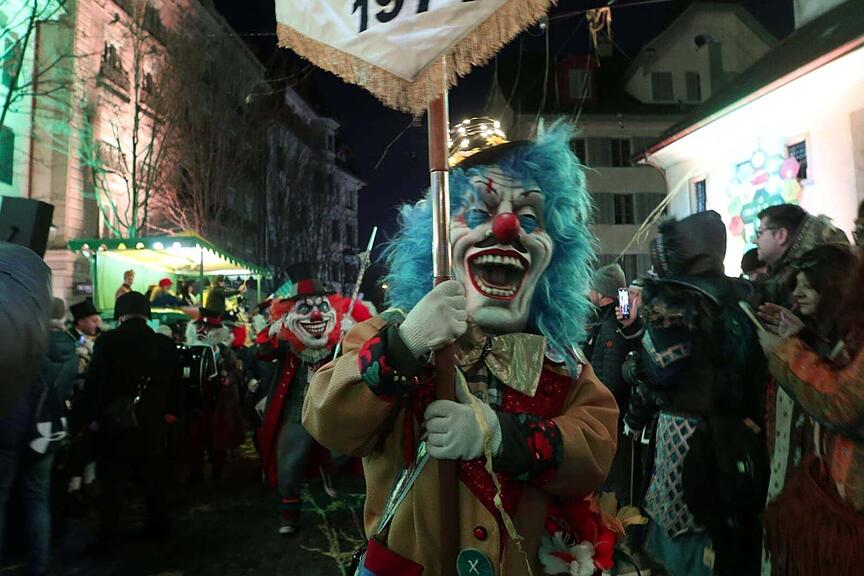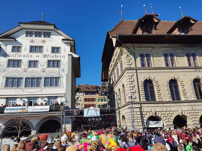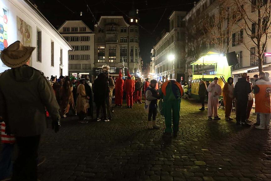 Momentan läuft eine Guuggenmusig nach der anderen über den Kapellplatz. Eröffnet wurde der Reigen kurz vor 6 Uhr durch die Alte Garde Lozärn.