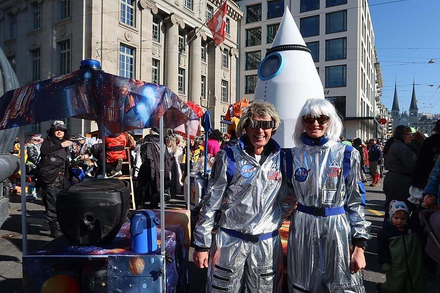 Völlig losgelöst... von der Erde... Diese Astronauten müssten gar nicht abheben, Aliens gibt es schliesslich auch an der Fasnacht zu genüge.
