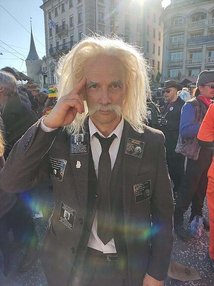 Ganz im Sinne seines Zitates hat Albert Einstein seiner Fantasie an der Fasnacht freien Lauf gelassen. Ob er eine Lösung für das Car-Problem am Schwanenplatz hat?