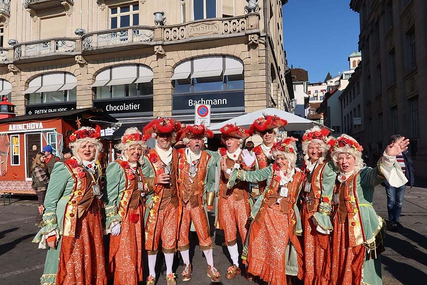 Diese Rosenkavaliere sind extra für die Fasnacht aus Voralberg angereist. Im Vergleich zu Österreich gäbe es hier mehr Guuggenmusik und es fange früher am Morgen an – heute waren sie pünktlich um 6 Uhr schon in der Stadt.