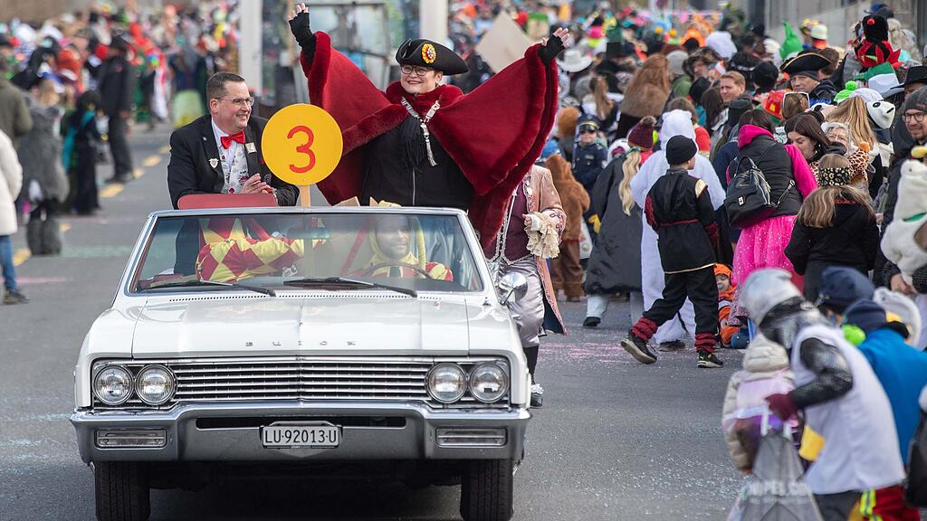 Zunftmeisterin Ingrid I. winkt vom Oldtimer aus ins Publikum als wäre nichts gewesen. Nach einer einjährigen Pause ist die Fleckenzunft zu Beromünster wieder am Start – und zugleich Gastgeberin des Michelsämter Umzugs, der in Rotation mit Neudorf und Hildisrieden heuer in Möischter ausgetragen wird. Dass der Verein nach einem internen Knatsch zwischenzeitlich kurz vor der Auflösung stand , ist vergessen.