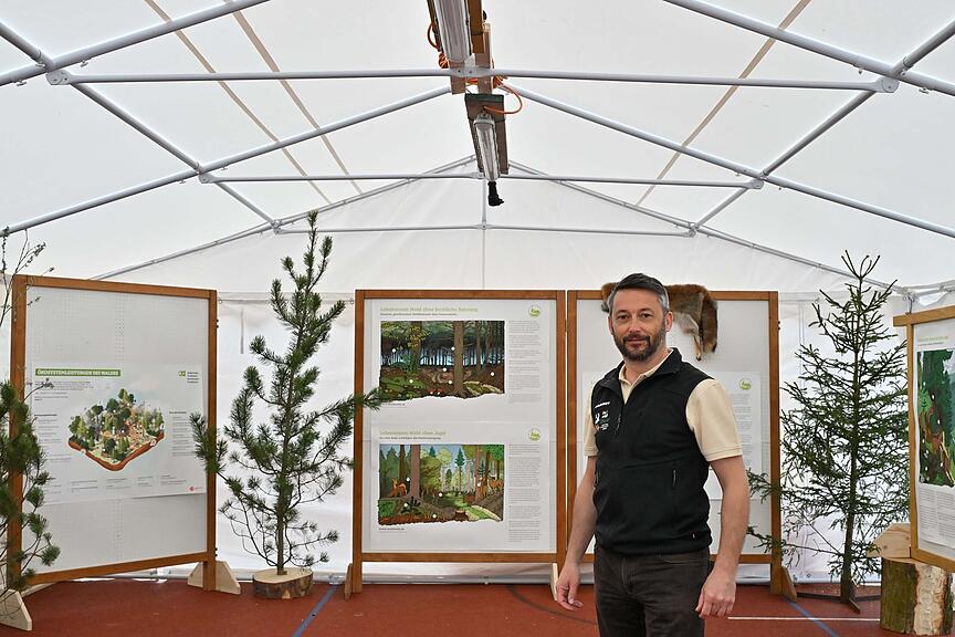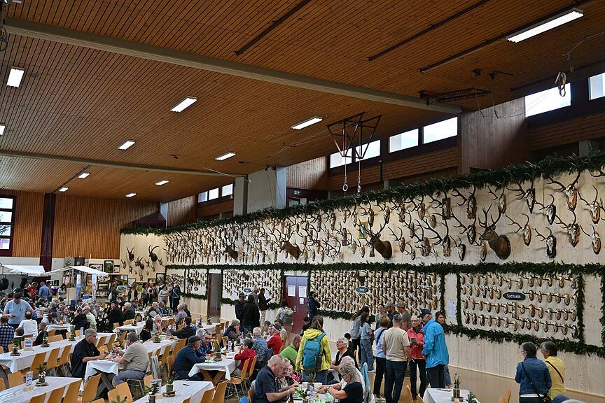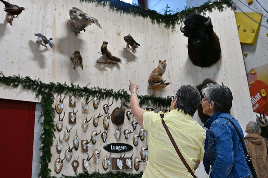 Die Szenerie ist eine Mischung aus Brauchtum, Volksfest und Naturkunde. Draussen beim Eingang gibt es eine Sonderschau. «Im und umä Wald» heisst diese und sie soll vor Augen führen, was der Wald alles kann – Heimat, Schutzraum und Lebensspender. Aber nicht nur. Es wird auch aufgezeigt, wie der Lebensraum Wald aus dem Gleichgewicht geraten kann, wenn die Jagd ausbleibt. Zu viel Rehwild schädigt die Verjüngung und unterdrückt beispielsweise die Artenvielfalt. Plakate zeigen: Ein stabiler, nachhaltig bewirtschafteter Wald ist ein fein austariertes System – mit Holz, mit Wild, mit Jagd.