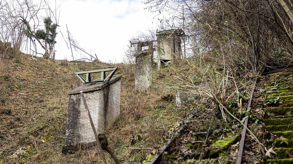 Verloren stehen die drei Betonpfeiler im Hang. Sie lassen sich leicht übersehen, sind sie doch schon ein Stück weit mit Wald und Wiese verwachsen. Ihre einstige Funktion lässt sich nur bei genauem Hinschauen erahnen. Am höchsten der Pfeiler ist eine Seilscheibe erkennbar, es muss sich also um die Überreste eines ehemaligen Lifts handeln. Aber keinem gewöhnlichen. Hier wurde 1937 ein Stehlift errichtet, der damals als Weltneuheit galt. In Einzelkabinen wurde man hier, auf einem Teller stehend, befördert.