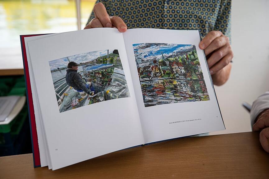 Er trägt dick auf, der Maler Christopher Lehmpfuhl. Wir sprechen hier aber von Ölfarbe: Der gebürtige Berliner stellt seine Werke seit über 20 Jahren erfolgreich und international aus, seit Freitag auch in der Galerie Urs Reichlin. Dort zelebrierte man den Neuzugang angemessen mit einer Bootsfahrt und anschliessendem Apéro in der Galerie.