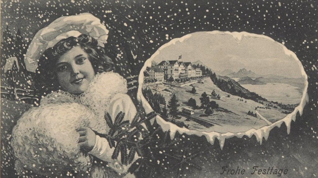 Haben Sie Festtagskarten schon versandt? Und gewiss schon welche erhalten. Das historische Bilddokument des Monats zeigt auch eine solche Karte. Zu sehen ist ein herziges Mädchen mit kuscheligem Schal und einem Handmuff, aus dem ein Tannenzweig hervorragt. Versandt wurde dieser Festtagsgruss von «J. Bossard-Ryf und Frau».