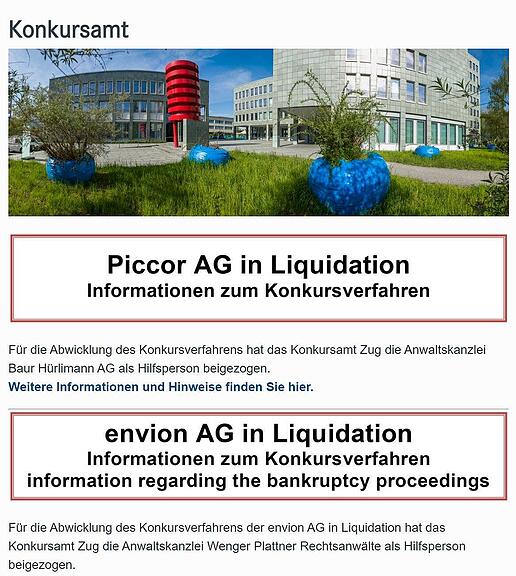 Zwei grosse, rot umrandete Anzeigen zieren derzeit die Homepage des Zuger Konkursamtes. Zwei Firmen – beide in Liquidation. Doch es sind keine «regulären» Konkurse, sondern beide wurden wegen Organisationsmängeln vom Handelsregister- und Konkursamt ausgelöst.
