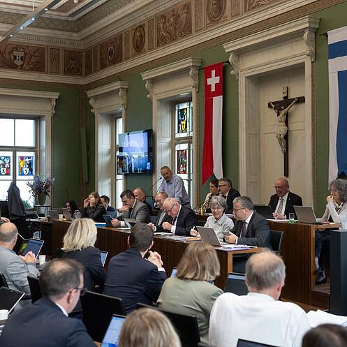 Die Zuger Kantonsrats-Session vom heutigen Donnerstag dauert bis voraussichtlich 17 Uhr.