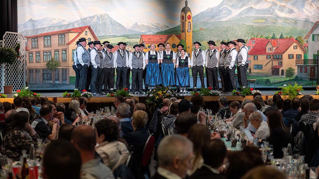 Vor idyllischer Kulisse: Der Jodlerklub Maiglöggli auf der Bühne des Le Théâtre.