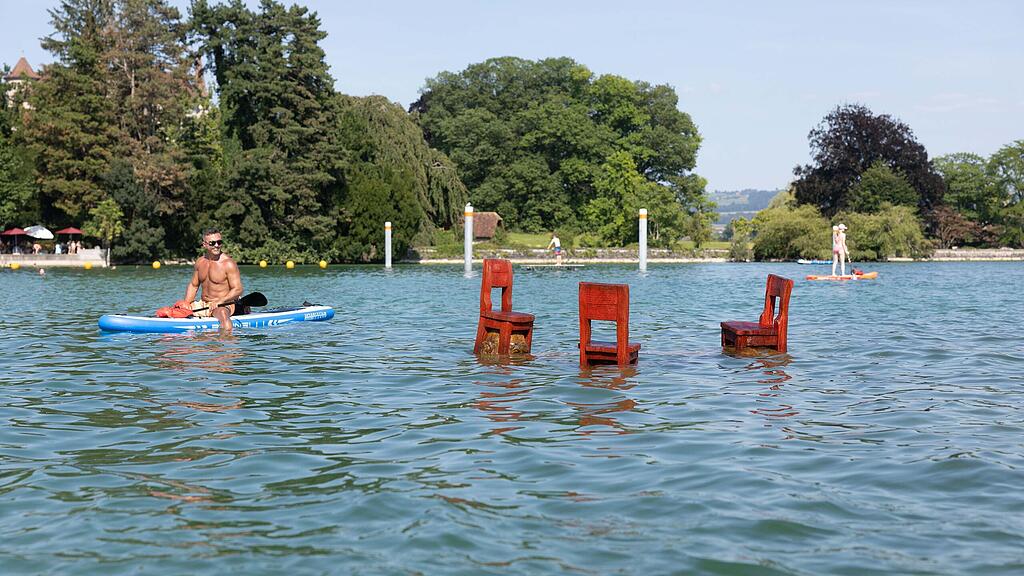 Zum Stuhlgang in den See: Ein schwimmendes Kunstwerk bereichert den Badespass beim Hirsgarten