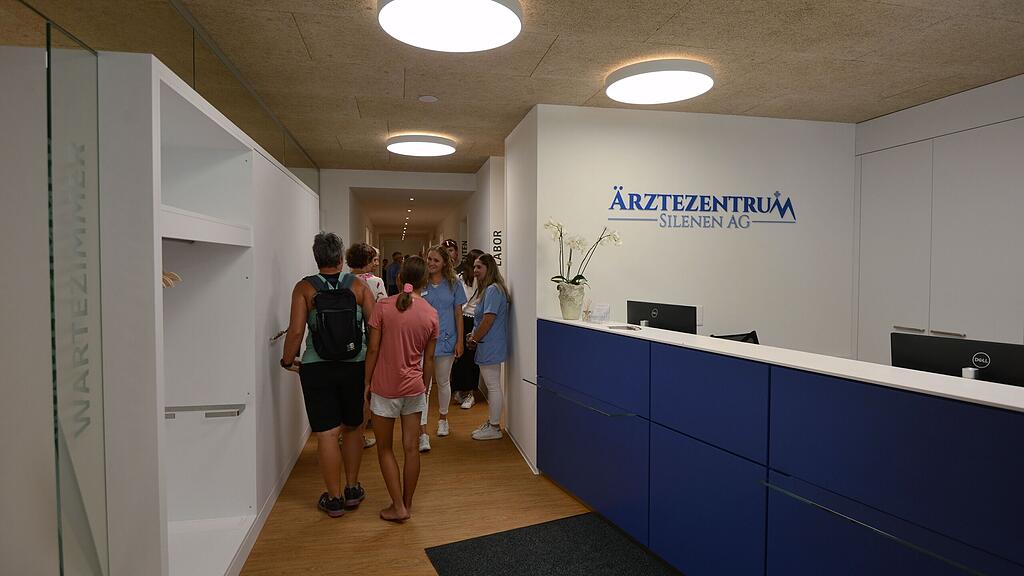 Der Eingangsbereich des neuen Ärztezentrums, besichtigt von Besuchenden an der Eröffnungsfeier im August.