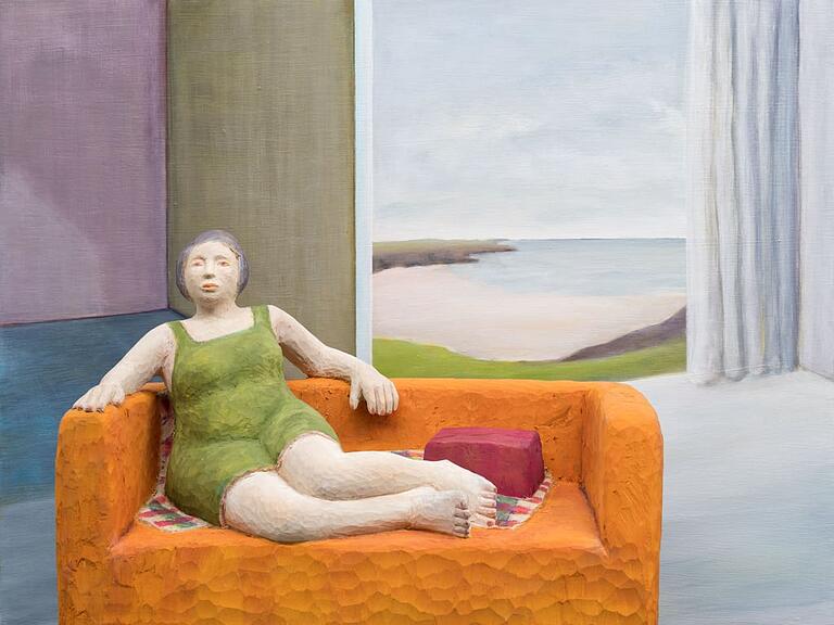 Gemalte Räume kommen ergänzend hinzu und bieten jeder der Figuren Raum zum Sein. Dieser Malprozess ist Ausdruck von Ursula Buchers Auseinandersetzung mit der Wahrnehmung von Innenräumen. Dabei sieht sie von Details und Personenstaffage ab und lenkt den Blick hinaus in eine vertraute Landschaft. Ob es den Menschen überhaupt noch braucht, ist eine zentrale Frage, mit der sich Bucher dabei beschäftigt. Ausgehend von dieser Menschenleere fragt sie weiter: Wie wirken diese neuen Räume? Entsteht Irritation? Wird das Bekannte erkannt? Wie fühlt sich die Leere an? Wie wird der Bezug nach aussen geschaffen? Was geschieht, wenn Vertrautes verändert wird?