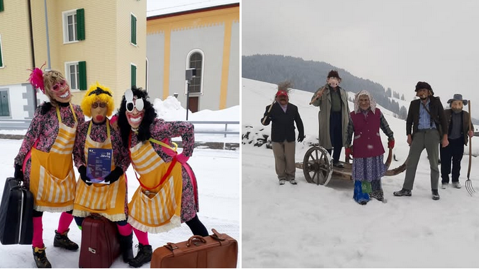 Jeweils am Schmutzigen Donnerstag ziehen in Unteriberg die Chrämeren und Mischtzieher durchs Dorf Unteriberg.